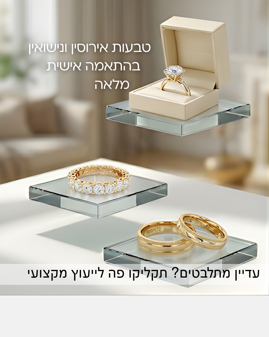 "אי אפשר לתאר במילים כמה אנחנו מרוצים הגענו כמובן כזוג שעומדים להתחתן בלי יותר מידי ידע וכמובן שייעצו לנו עד לרמת התאם האישי של כל אחד מאיתנו עד לטבעות הכי יפות שיכולנו לבקש לא התייחסו אלינו כלקוחות התייחסו אלינו כמשפחה ממליץ בחום לכל אחד וכמובן תודה רבה לכם על יחס ושירות מדהים❤️"
